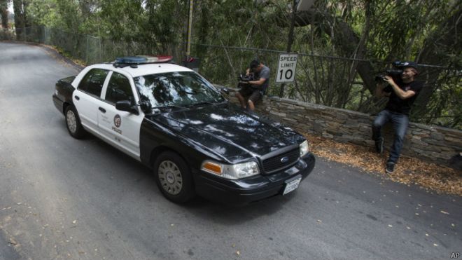 La policía recibió una llamada de emergencia desde la casa, ubicada en el barrio de Beverly Crest, a las 05:20 am hora local (12:20 GMT).