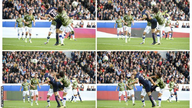 El contacto con el talón en el aire recordó la definición del sueco Zlatan Ibrahimovic en el partido París Saint-Germain contra el SC Bastia en octubre de 2013, juego correspondiente a la Ligue 1 de Francia.